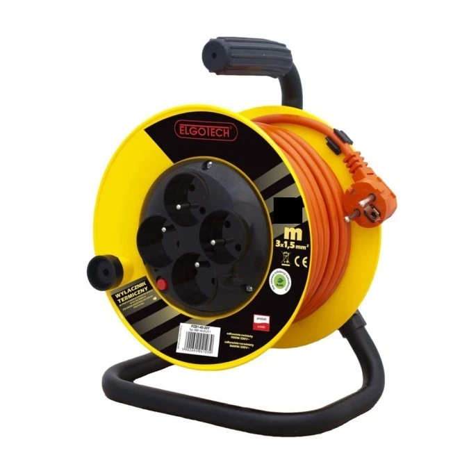 4. Przedłużacz bębnowy 25m 3x1,5 4x2P+PE PVC IP20 kabel zwijany na bębnie 4 gniazda z uziemieniem PZB-40-25Y ELGOTECH 255.11
