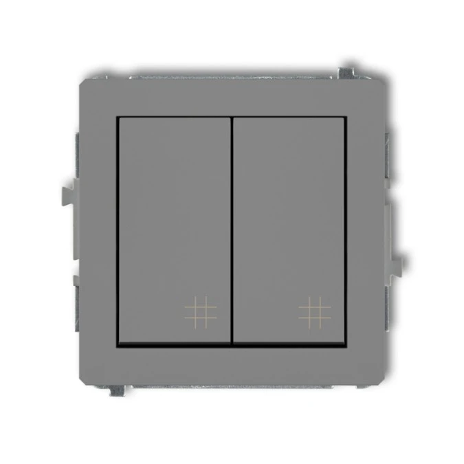 DECO Wyłącznik krzyżowy podwójny (dwa klawisze bez piktogramu) szary mat 27DWP-66.1 KARLIK