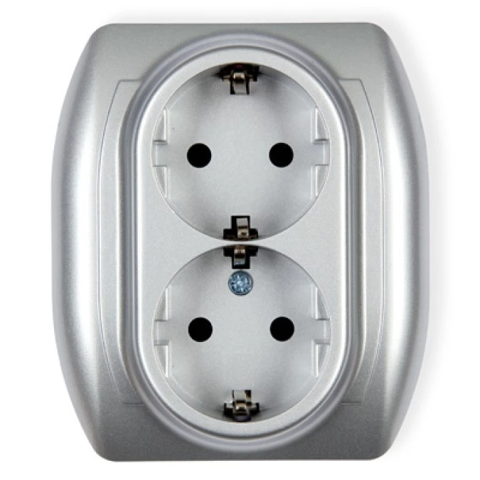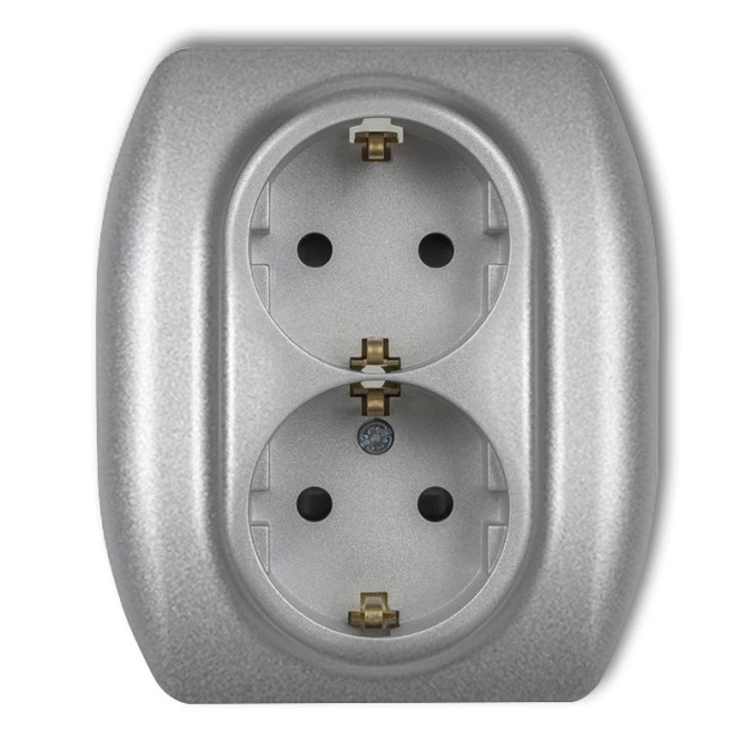 TREND Gniazdo podwójne z/u SCHUKO srebrny metalik 7GP-2sp