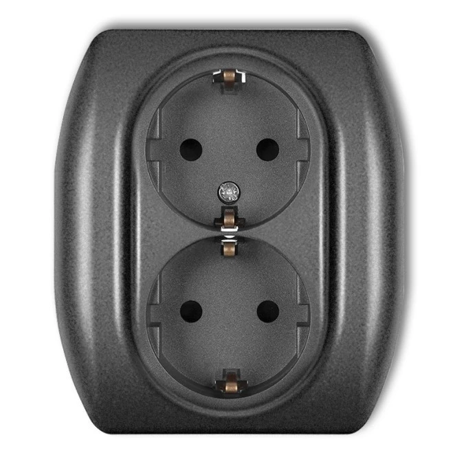MINI Gniazdo podwójne z uziemieniem schuko (przesłony torów prądowych) grafitowy 11MGP-2sp KARLIK