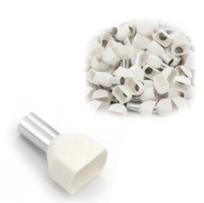 8. Tulejki Izolowane Kablowe Podwójne Do Przewodów 2x0,5mm Biała 100 Szt. 17.06