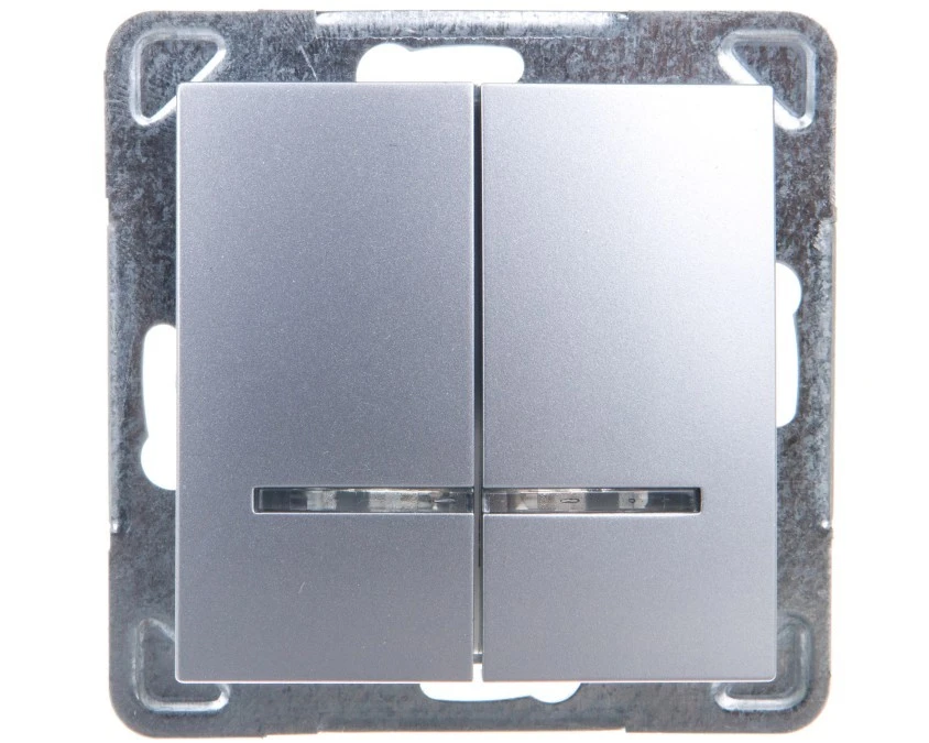 15. IMPRESJA Wyłącznik podwójny świecznikowy podwójny z podświetleniem srebro ŁP-2YS/m/18 OSPEL 31.43