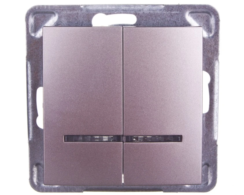 IMPRESJA Wyłącznik podwójny świecznikowy z podświetleniem niebieskim tytan ŁP-2YS/m/23 OSPEL