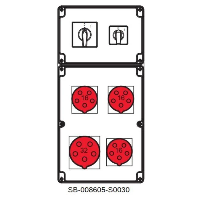 Rozdzielnica 0-1(32A) 0-1(16A) 1x5x32A 3x5x16A INA=32A IP54 SB-008605-S0030-54