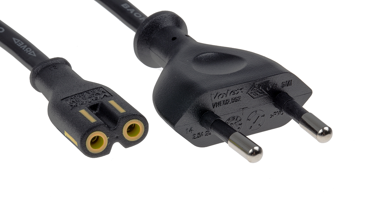 Przewód zasilania złącze A: IEC C7 złącze B: EuroPlug typu C 1.8m 2,5 A 250 V 2 x 0,75 mm² Czarny