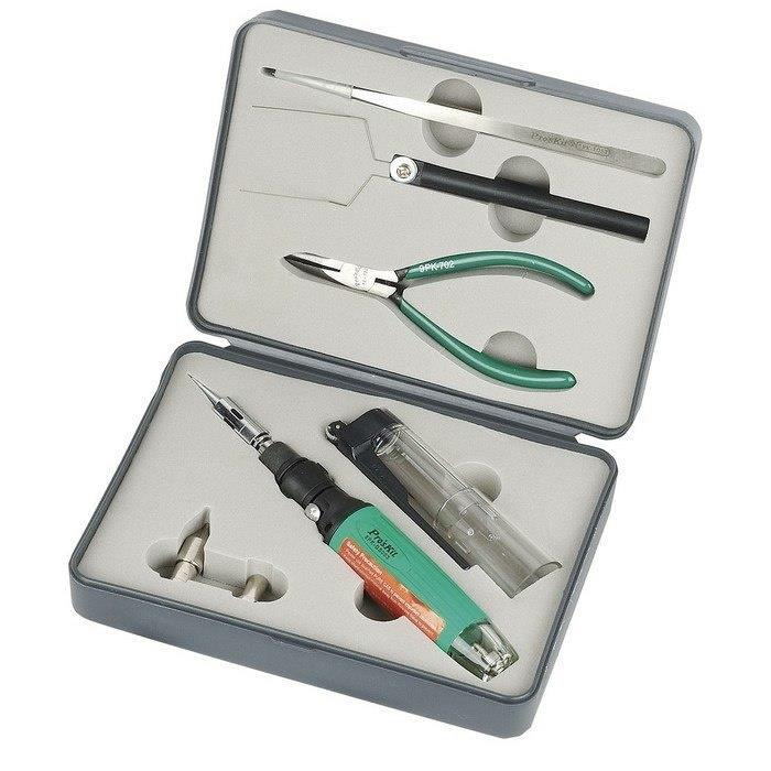 Lutownica gazowa z funkcją palnika + zestaw narzędzi, Proskit 1PK-GS300K