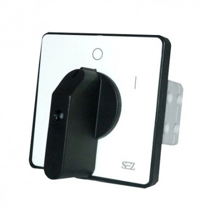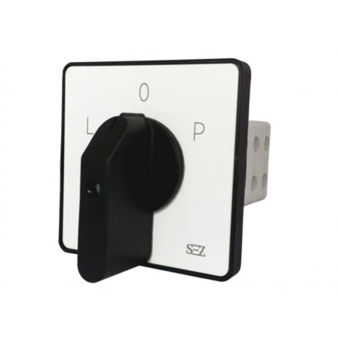 12. Łącznik krzywkowyL-0-P 63A 500V 3 fazowy przełącznik z dźwignią oraz szyldem SEZ S63 JD 9151 C6 130.19