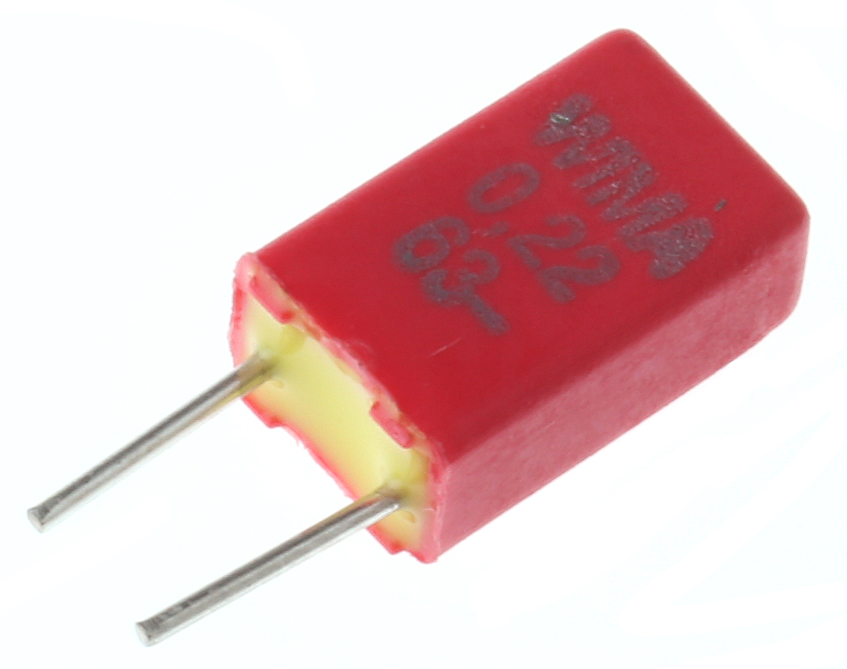 5. Kondensator foliowy 2.2μF 40 V ac, 63 V dc KEMET Poliester metalizowany rozstaw: 10mm THT ±10 1.78 x1500