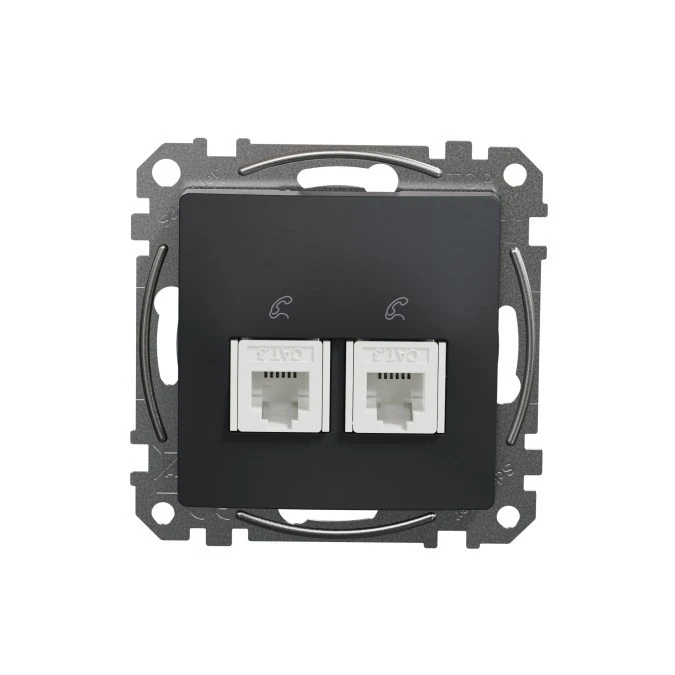 Gniazdo telefoniczne podwójne RJ11, czarny antracyt, Sedna Design i Elements SDD114492