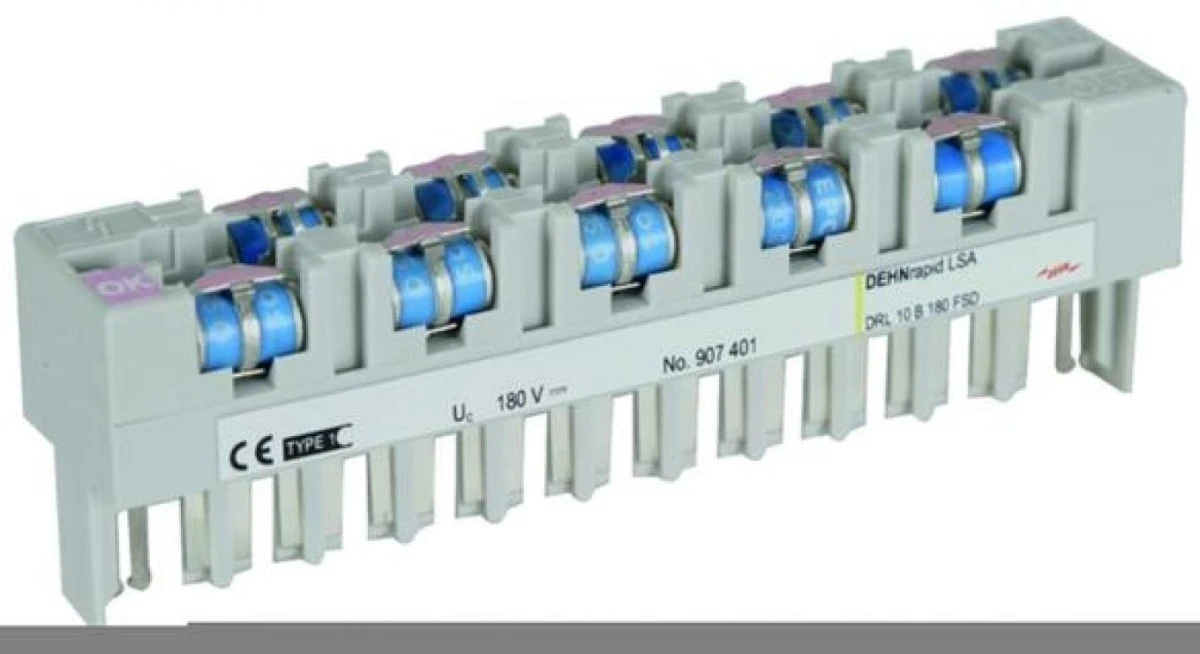 7. Ogranicznik przepięć DEHNrapid LSA 10 B 180 FSD z magazynkiem, 10 par, z funkcją bezpiecznego uszkodzenia i wskaźnikiem uszkodze 928.26