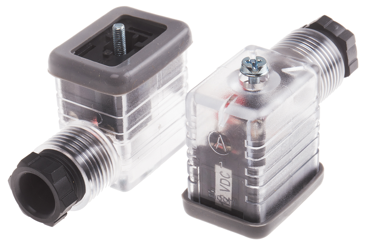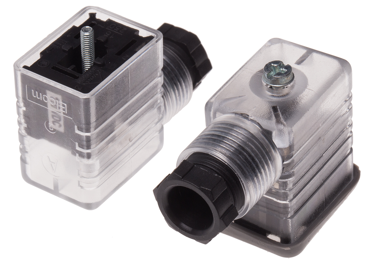 6. Złącze zaworu elektromagnetycznego B 2P+E 250 V DC Żeński LED: Tak dławnica PG9 Montaż na kablu RS PRO 64.02