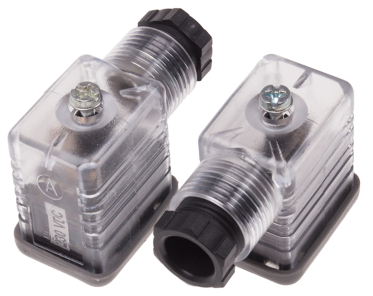 Złącze zaworu elektromagnetycznego B 2P+E 250 V DC Żeński LED: Tak dławnica PG9 Montaż na kablu RS PRO