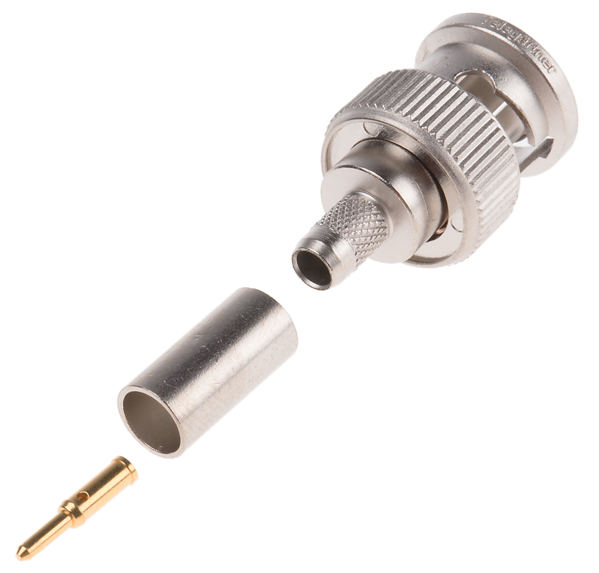13. Złącze koncentryczne Montaż na kablu Męski 50Ω typ złącza Złącze BNC 0 to 4GHz, zaciskane typ kabla RG174/U, RG188 A/U, 22.73 x100