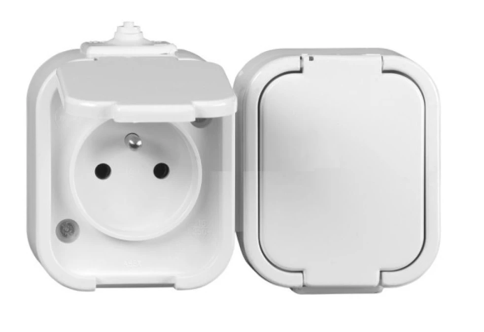 Bursztyn Gniazdo Hermetyczne Pojedyncze Z/U + Łącznik Ip44 Białe Gwn-B