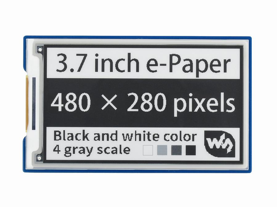 Waveshare 3.7inch e-Paper e-Ink Display HAT For Raspberry Pi, 480×280, Black / White, 4 Grey Scales, SPI