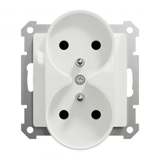 Gniazdo 2x2P+PE z przesłonami do systemu ramkowego (do ramek Sedna Design), białe, Sedna Design SDD111275