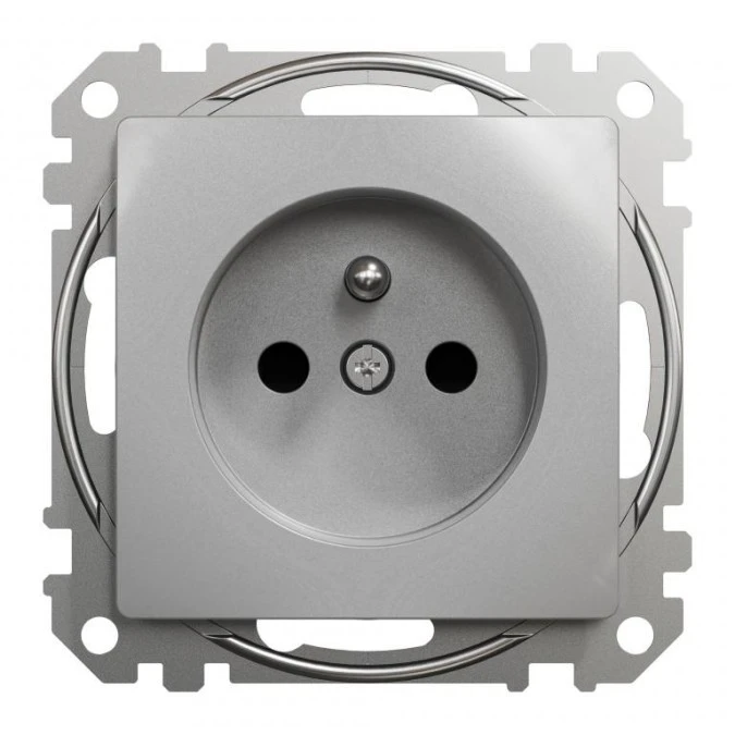 Gniazdo zasilające 2P+PE z przesł. torów prąd., zac. bezgw., srebrne alu, Sedna Design i Elements SDD113012
