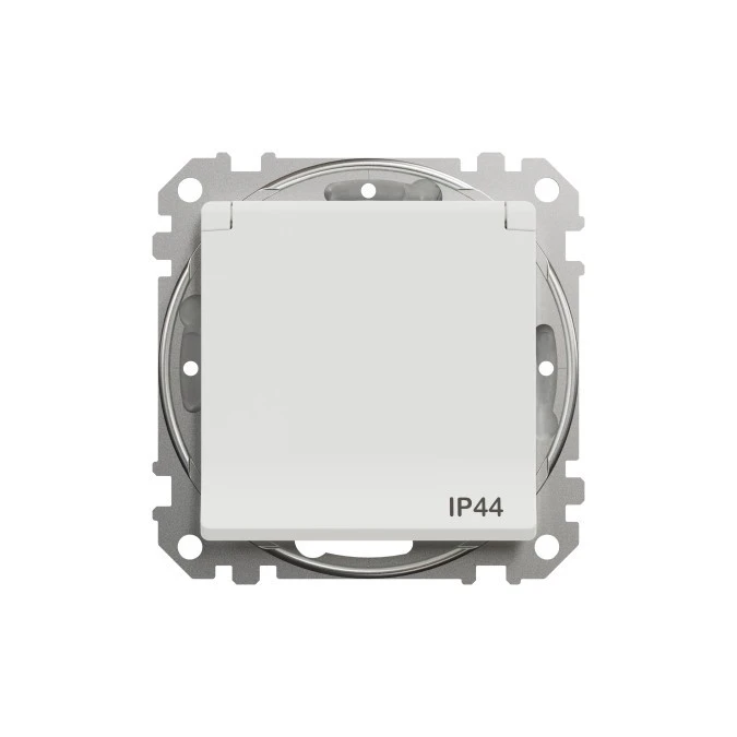 Gniazdo zasilające 2P+PE z przesłonami torów prądowych IP44, białe, Sedna Design i Elements SDD211013