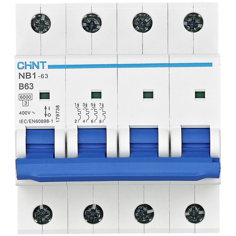 Chint 179752 NB1-63 Circuit Breaker 4P 63A 240/415V 6kA IEC/EN 60947-2
