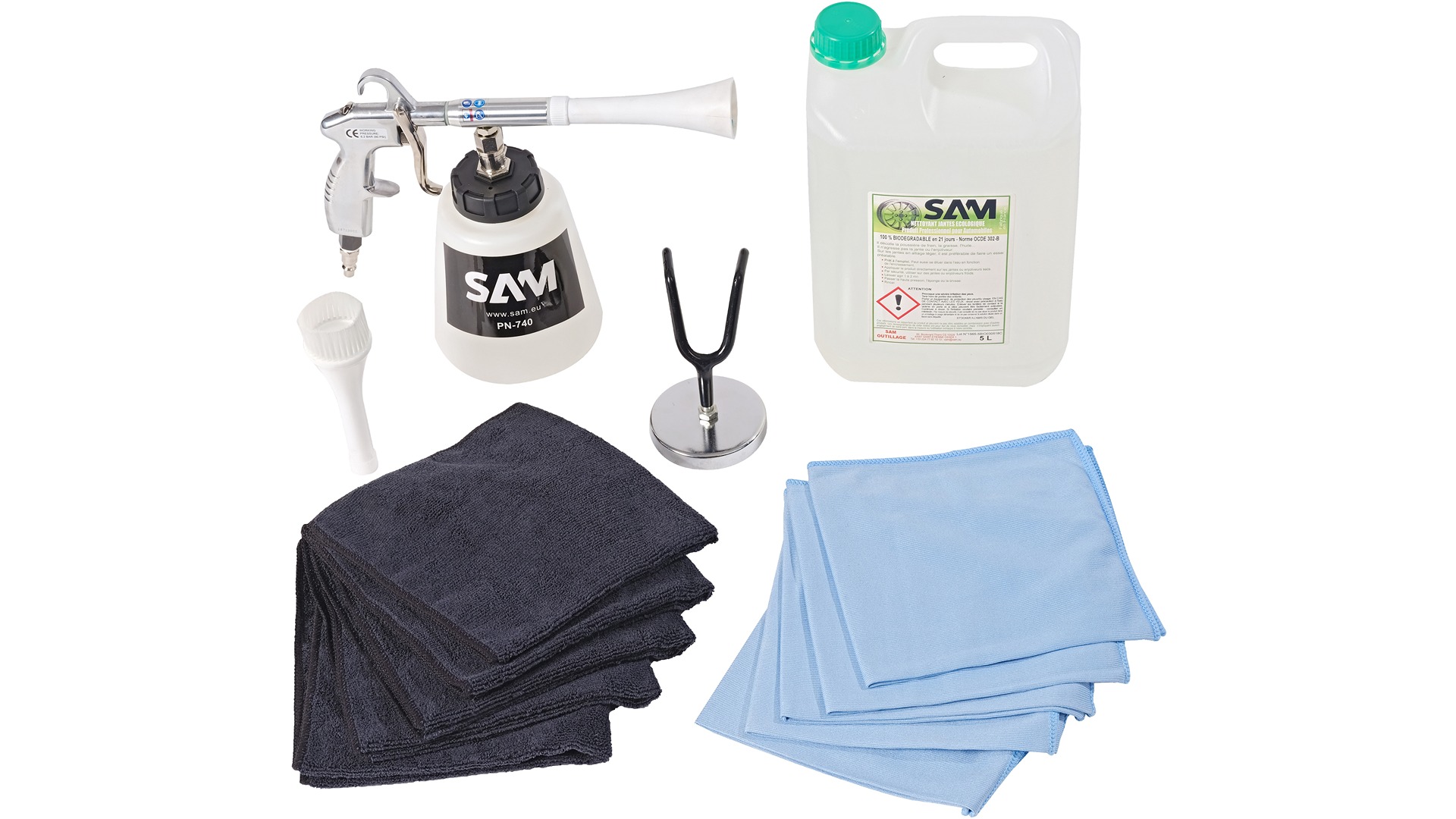 Zestaw narzędzi SAM Zestaw do czyszczenia felg puszki 5l odtłuszczającego środka czyszczącego, chłonne ściereczki z