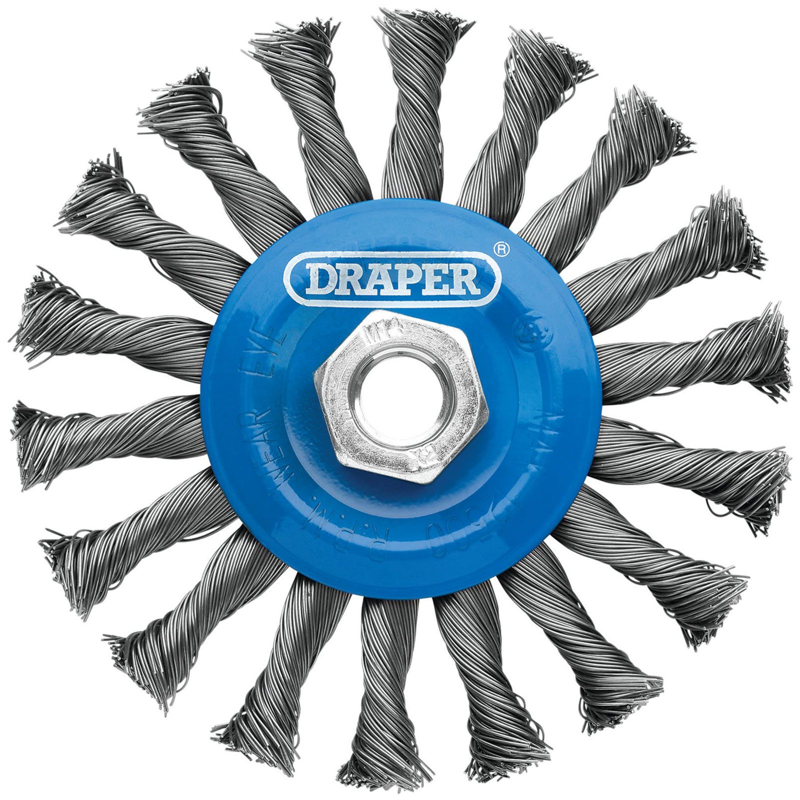 Draper 08063 Steel Bevelled Twist-Knot Wire Wheel Brush, 115mm, M14