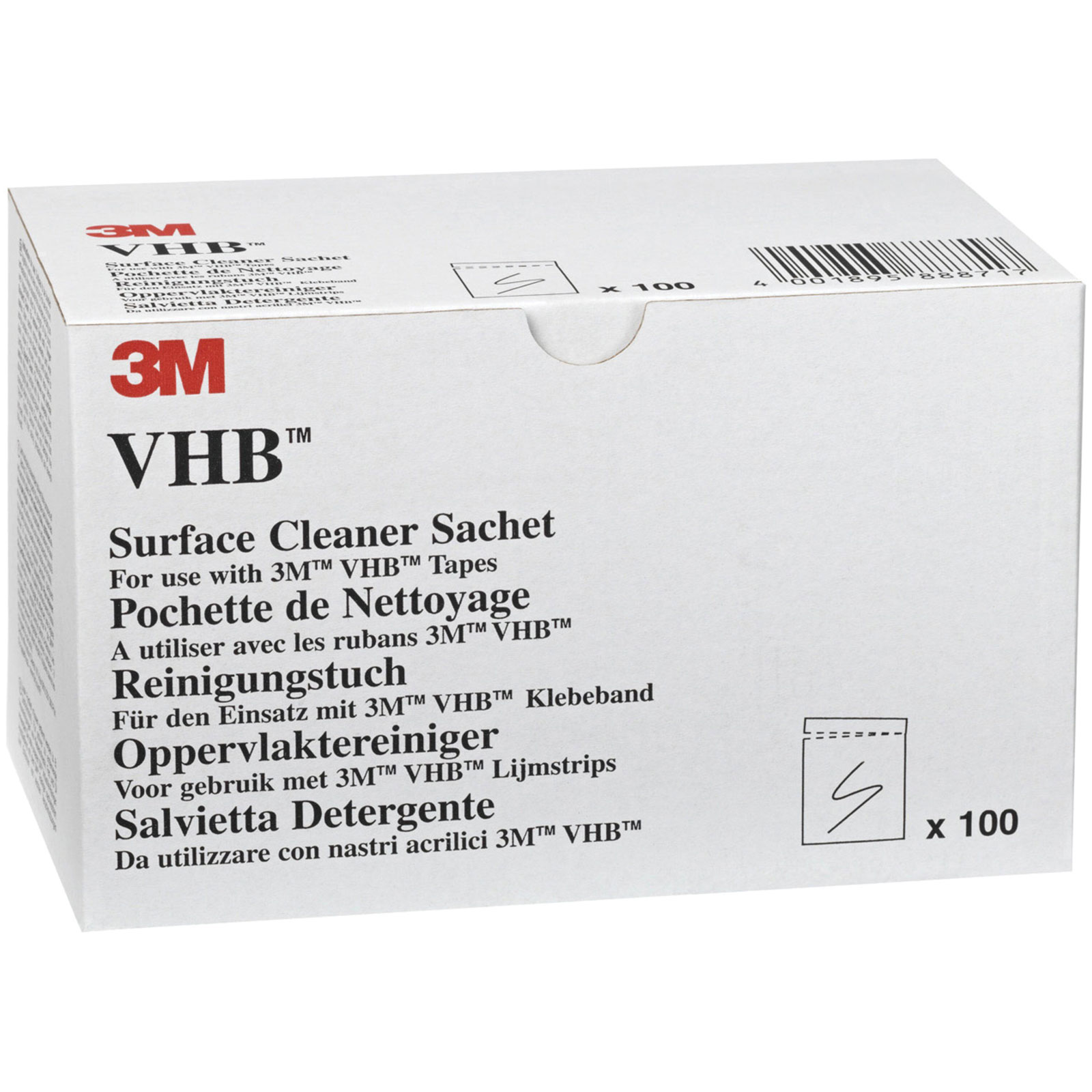 3M 7000071715 VHB™ Surface Cleaner 25 ml Sachets, Clear, Box 100