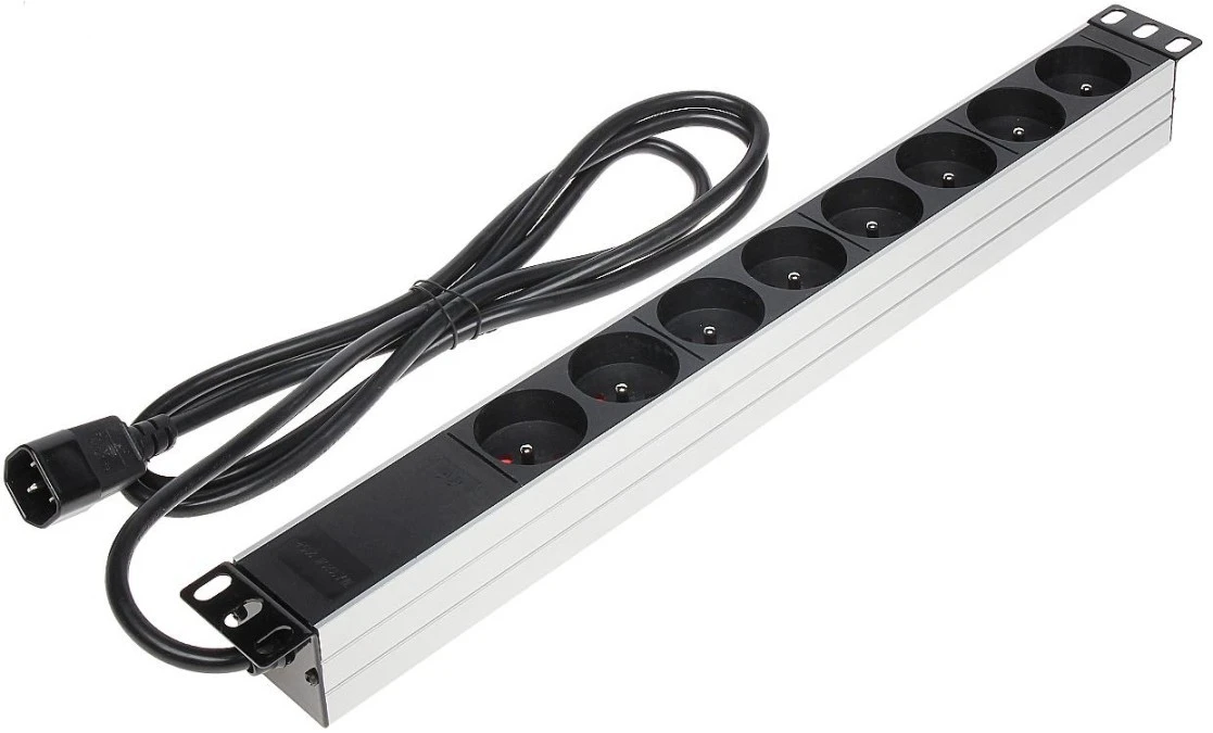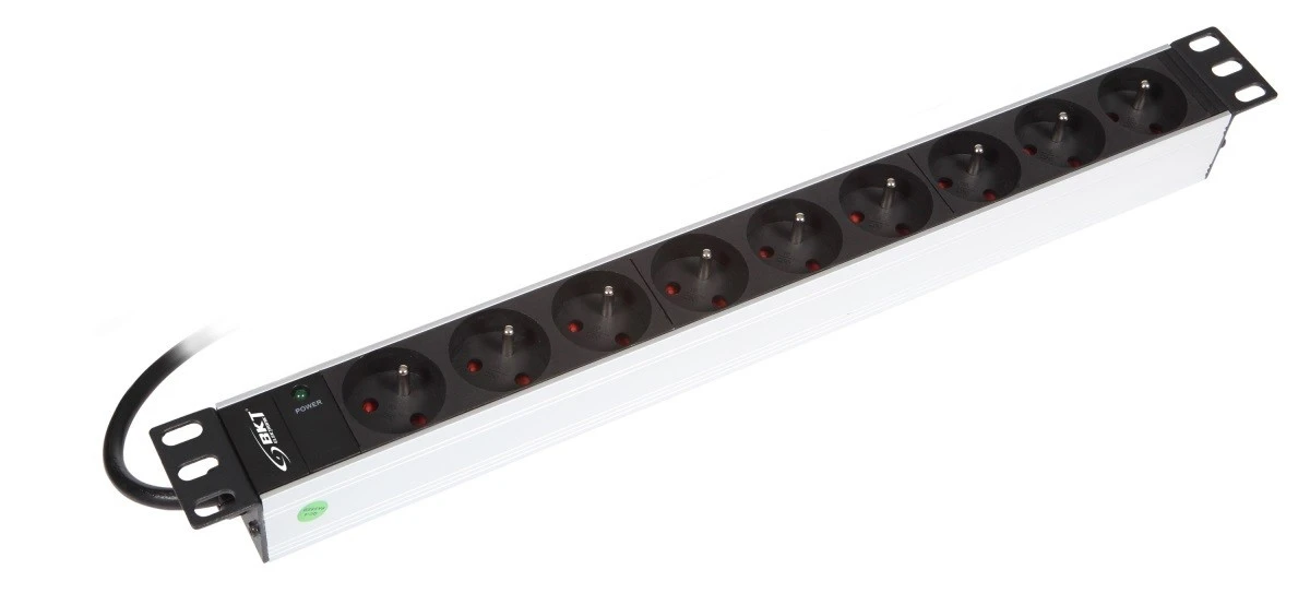 Listwa zasilająca aluminiowa 19 1U, 9xNF C61-314 standard PL, FR, wtyk DIN 49441 unischuko 16A/250V, 3680W, wyłącznik podświetla