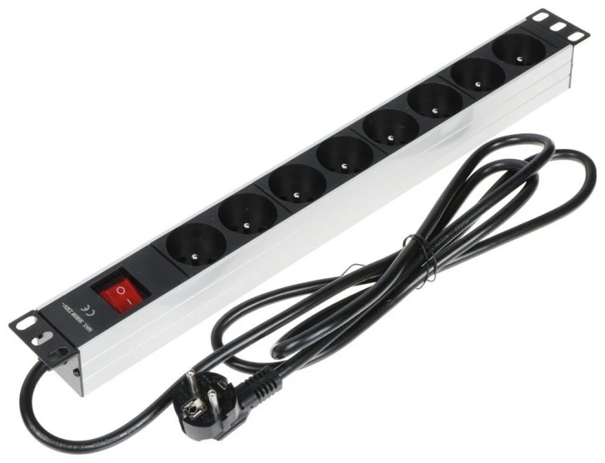 7. Listwa zasilająca aluminiowa 19 1U, 9xNF C61-314 standard PL, FR, wtyk DIN 49441 unischuko 16A/250V, 3680W, wyłącznik podświetla 88.54