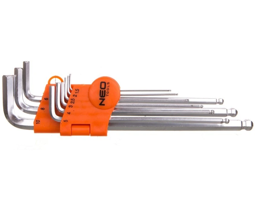 1. Zestaw kluczy imbusowych z kulką 1,5-10mm metaliczne 9szt w etui NEO 09-525 27.58