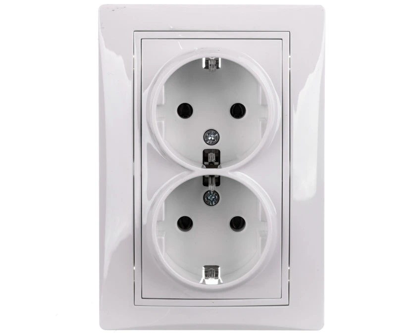 DOMO Gniazdo podwójne Schuko kompletne śrubowe 16A 250V biały 011270102 24740