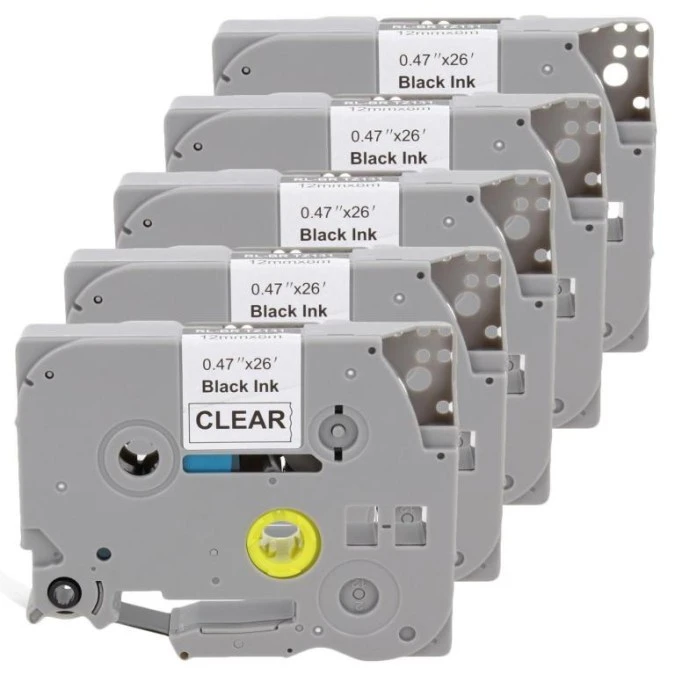 Taśma 5x Tze-131 do drukarki Brother 12mm 8m przeźroczysta taśma czarny nadruk /5szt./