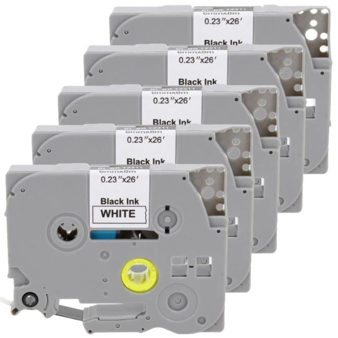 Taśma 5x Tze-211 do drukarki Brother 6mm 8m biała taśma czarny nadruk /5szt./