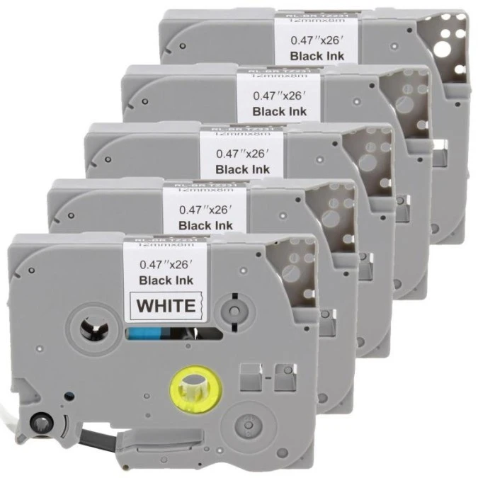 Taśma 5x Tze-231 do drukarki Brother PT 12mm 8m biała taśma czarny nadruk /5szt./