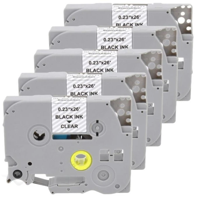 Taśma 5x Tze-111 do drukarki Brother 6mm 8m przeźroczysta taśma czarny nadruk /5szt./