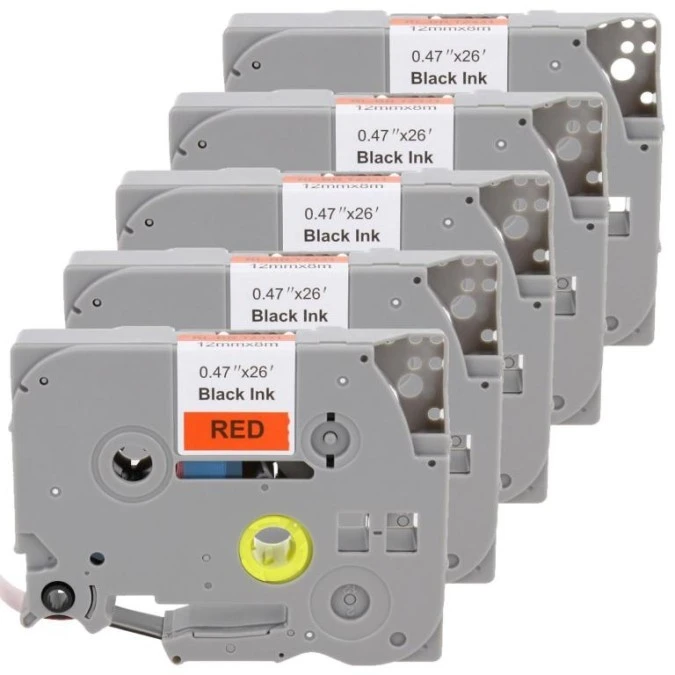 5. Taśma 5x Tze-431 do drukarki Brother 12mm 8m czerwona taśma czarny nadruk /5szt./ 97.54