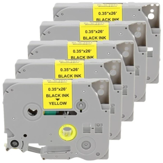 Taśma 5x Tze-621 do drukarki Brother 9mm 8m żółta taśma czarny nadruk