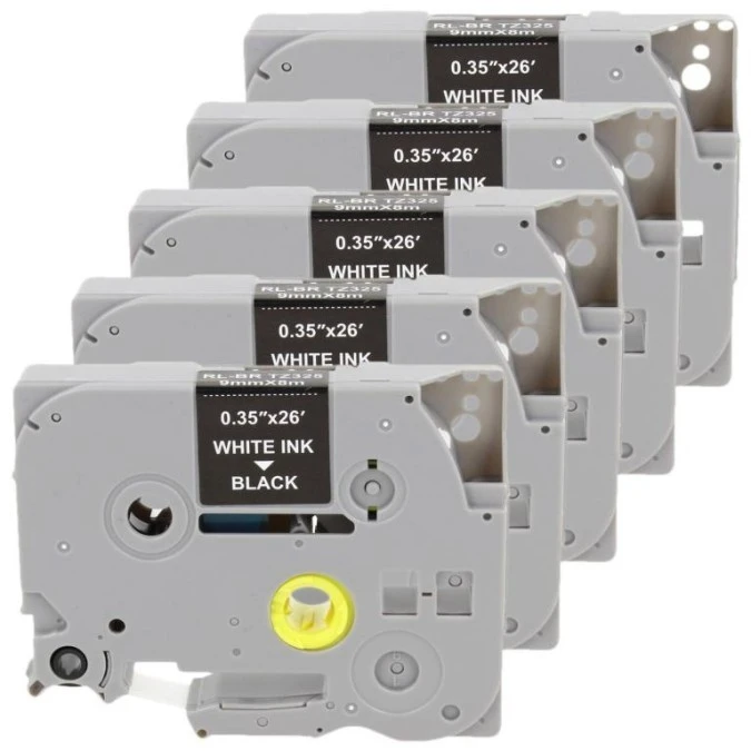 Taśma 5x Tze-325 do drukarki Brother 9mm 8m czarna taśma biały nadruk