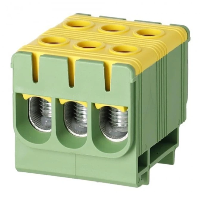 Blok rozdzielczy ‑ odgałęźny 3 ‑ polowy 2,5-50mm2 żółto-zielony montaż płaski FJ-E50/3/D 1000059