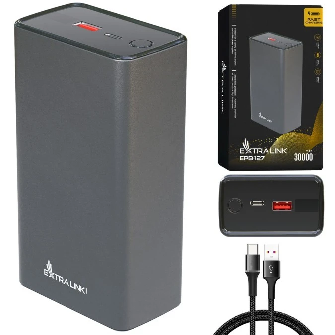 1. Powerbank Power bank, Fast Charging, USB-C Extralink EPB-124 30000mAh Czarny 177.16