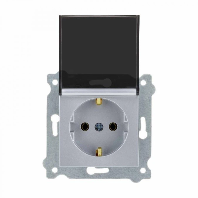 Gniazdo z uziemieniem Schuko 2P+E i pokrywą gniazda Srebrny 239/10E EXEN