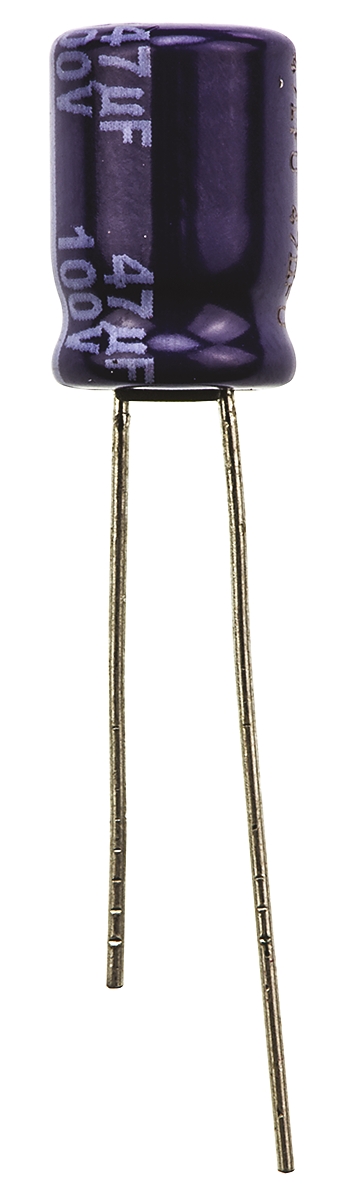 Kondensator 47μF 100V dc Radialny, Otwór przelotowy Panasonic roztaw: 3.5mm 8 (Dia.) x 11.5mm