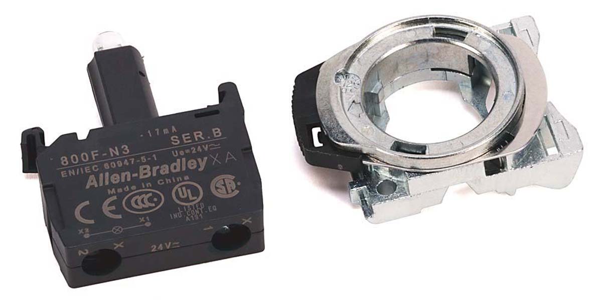 4. Blok stykowy i uchwyt Allen Bradley 800F blokada Blok styków 1NC 24V, przyłącze śrubowe 86.04