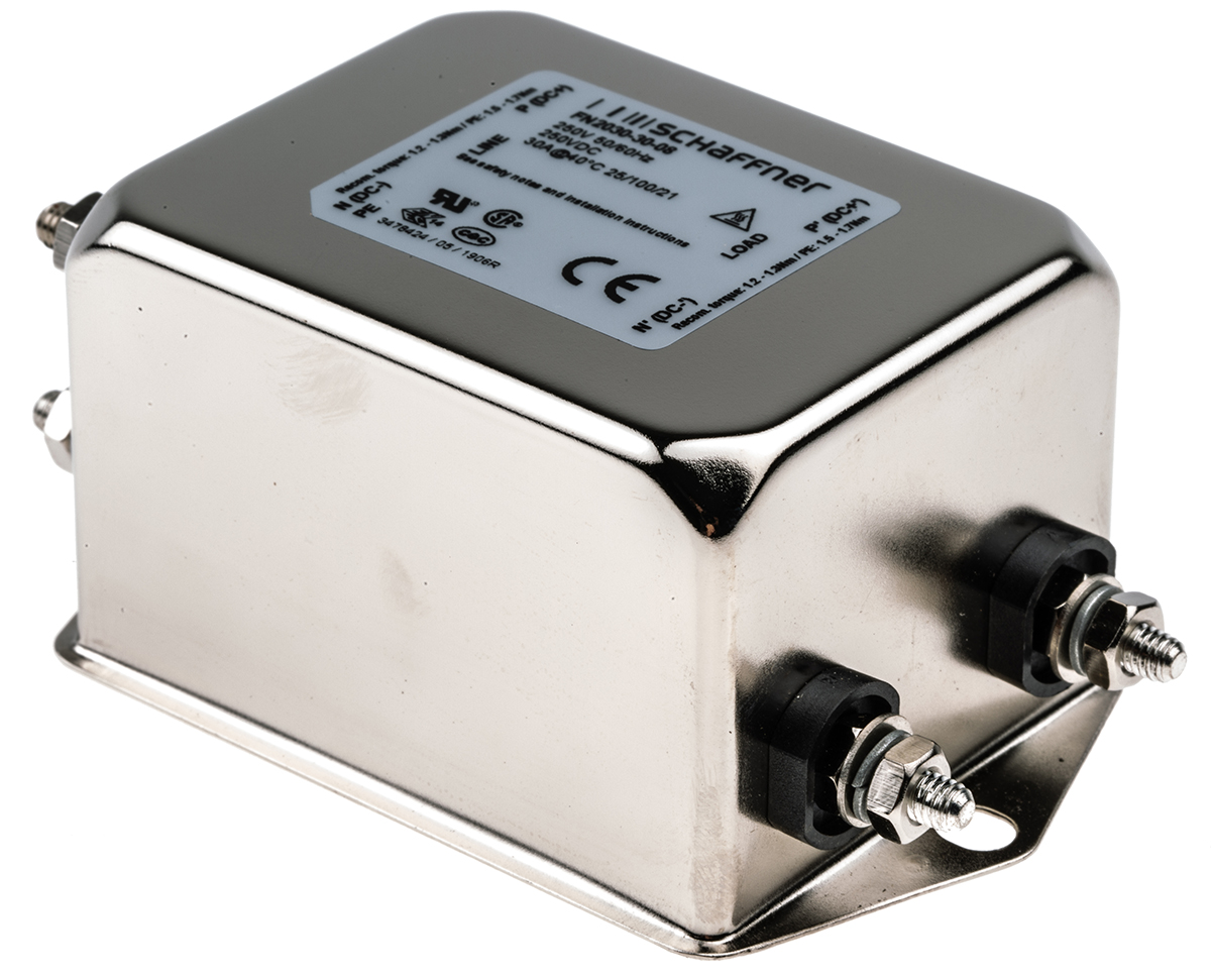 7. Filtr EMI 30A 1-fazowy 330kΩ 250 V AC/DC 400Hz 2 mH Schaffner Montaż w obudowie 280.02