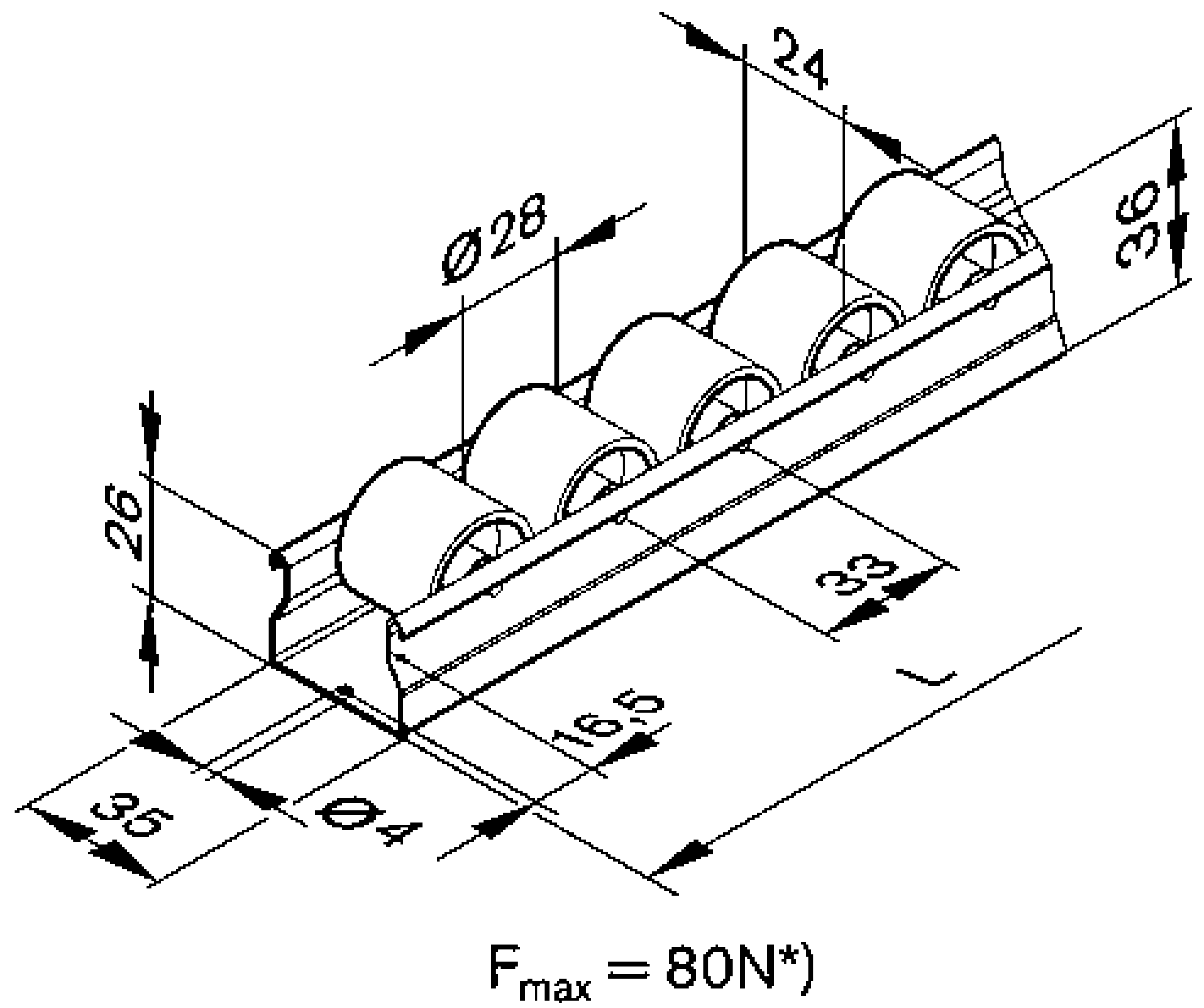 9. Rolka transportowa, dł. gąsienic: 2000mm, szer. gąsienic: 35mm, śr, rolki: 25mm, szer. rolki: 26mm 517.37