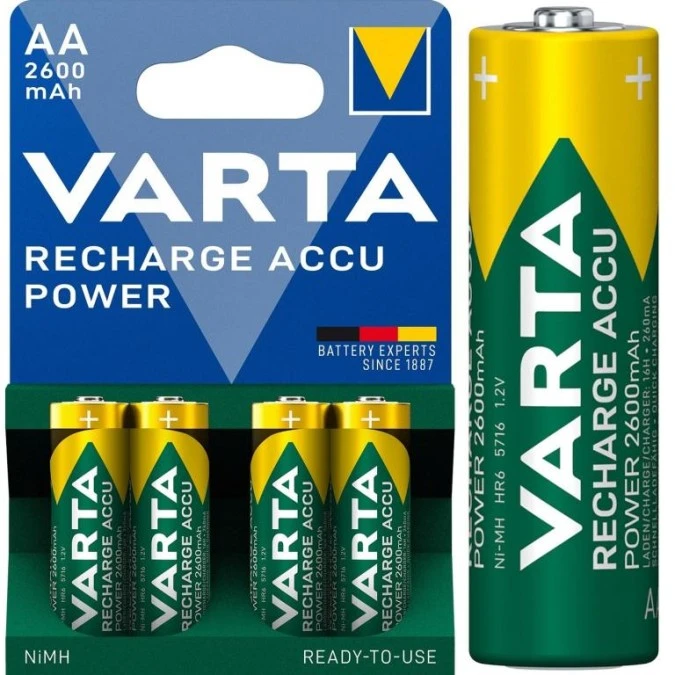 8. Akumulator Ni-MH R6 AA 2600mAh 1,2V (Ready 2 Use) VARTA Recharge Accu Power BLISTER 4szt. 55.31