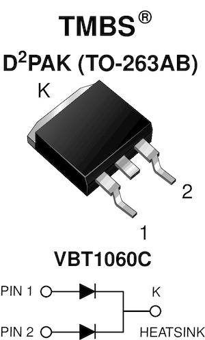 VBT1060C-M3 Dual High-Voltage Trench MOS Barrier Schottky Rectifier Ultra Low VF = 0.39 V at IF = 2.5 A