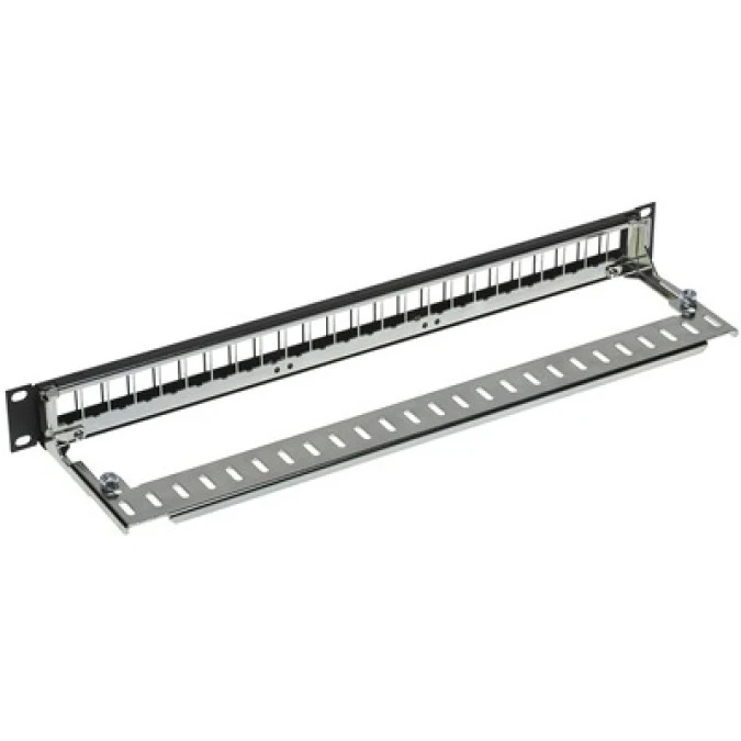 Patch panel pusty RACK 19 1U na 24 moduły keystone z półką czarny DataGate Molex