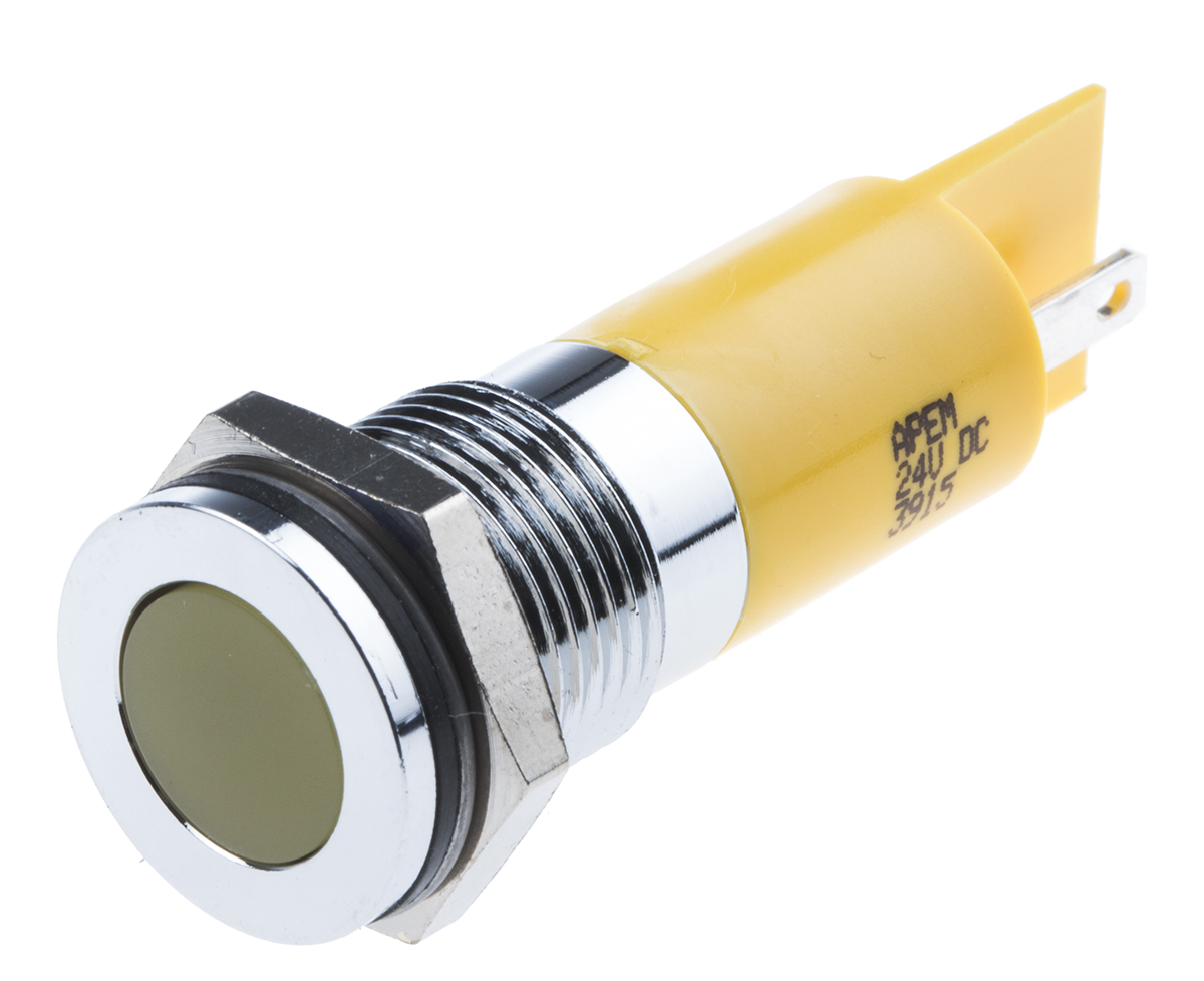 14. Lampka kontrolna do montażu panelowego 24V dc, Żółta 14mm LED Chrom Końcówka lutownicza RS PRO 50.28