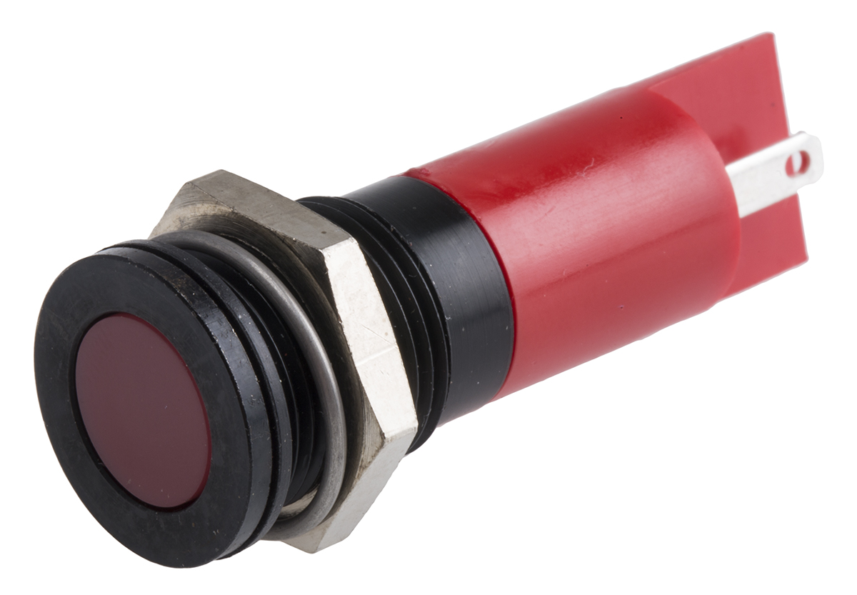 Lampka kontrolna do montażu panelowego 12V dc, czerwona 14mm LED Końcówka lutownicza RS PRO