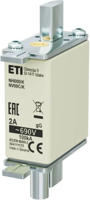 Wkładka bezpiecznikowa - z wybijakiem NH000/K 2A gG 690V 004111172 /3szt./